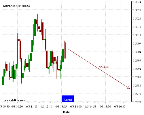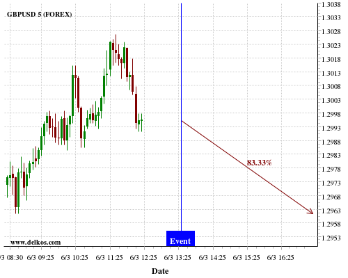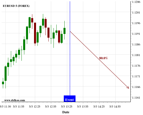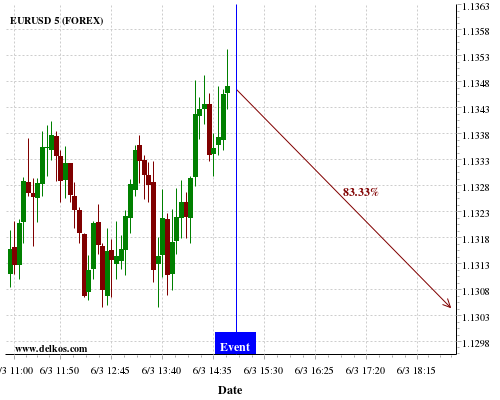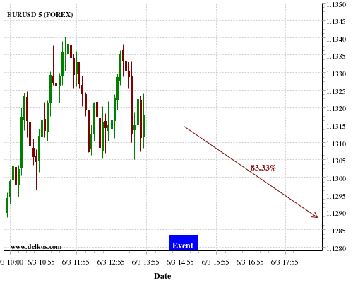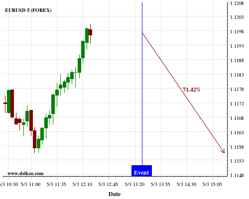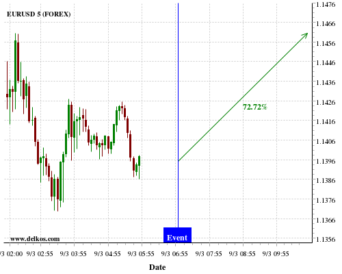 TradersNews 72.72% probability that EURUSD will trend up on Monday 09 Mar at 07:00 AM GMT if the DE Balance of Trade number is greater than â¬13.4B.
