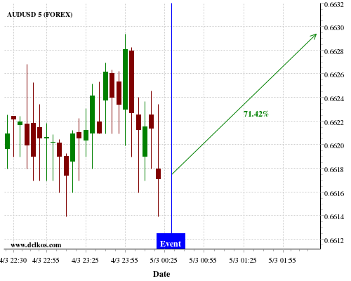 [Add to iCal Calendar] [Add to Google Calendar]This Monday 09 Mar at 07:00 AM GMT the latest DE Balance of Trade number will be released. If the number is greater than than economists' consensus there is a 72.72% probability that EURUSD will trend up following the news event.This probability is based on the last 12 DE Balance of Trade events, in…