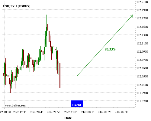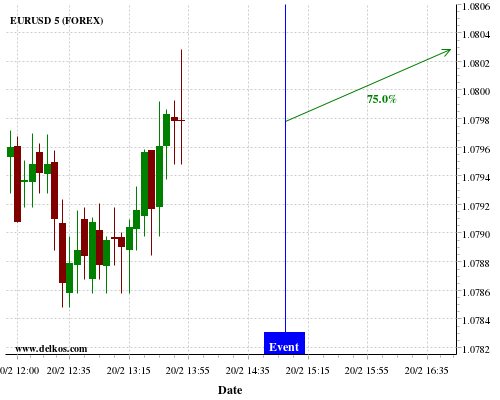 [Add to iCal Calendar] [Add to Google Calendar]This Friday 21 Feb at 08:30 AM GMT the latest DE Markit Manufacturing PMI Flash number will be released. If the number is greater than than economists' consensus there is a 75% probability that EURUSD will trend down following the news event.This probability is based on the last 12 DE Markit Manufacturing PMI Flash…