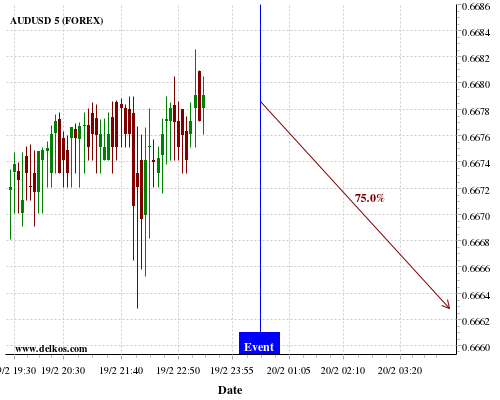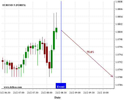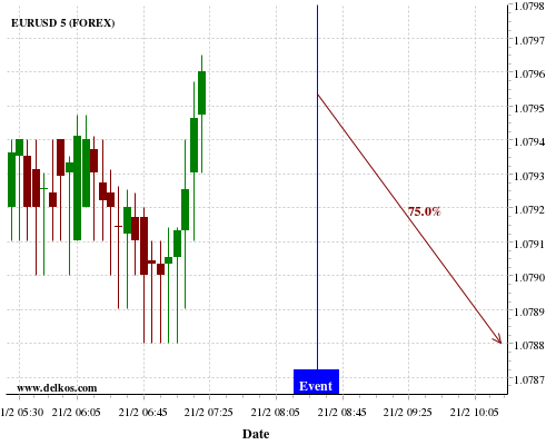 TradersNews 75% probability that EURUSD will trend down on Friday 21 Feb at 08:30 AM GMT if the DE Markit Manufacturing PMI Flash number is greater than 44.8.