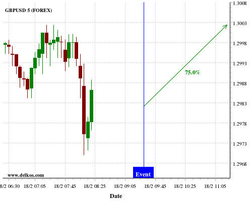 TradersNews 83.33% probability that GBPUSD will trend up on Wednesday 19 Feb at 01:30 PM GMT if the CA Inflation Rate YoY number is equal to 2.3%.