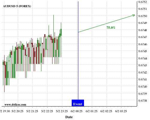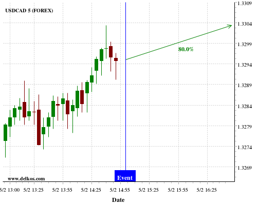 [Add to iCal Calendar] [Add to Google Calendar]This Friday 07 Feb at 03:00 PM GMT the latest CA Ivey PMI s.a number will be released. If the number is greater than than economists' consensus there is a 80% probability that EURUSD will trend down following the news event.This probability is based on the last 12 CA Ivey PMI s.a events, in…
