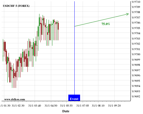 TradersNews 71.42% probability that USDCAD will trend up on Friday 31 Jan at 10:00 AM GMT if the EMU GDP Growth Rate QoQ Flash number is equal to 0.2%.