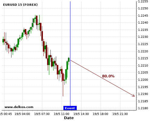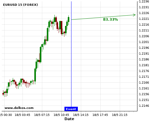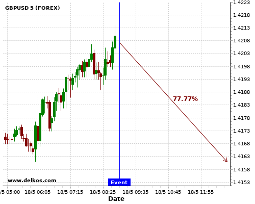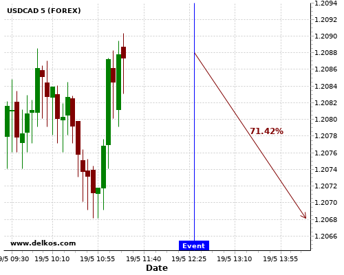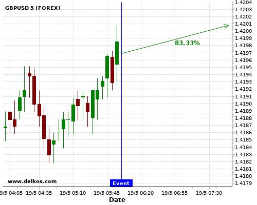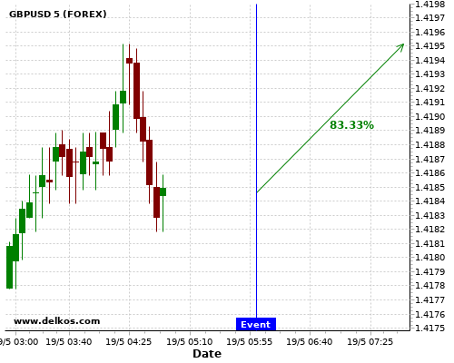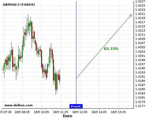 TradersNews 83.33% probability that USDJPY will trend up on Wednesday 19 May at 11:50 PM GMT if the JP Balance of Trade number is less than ¥140B.