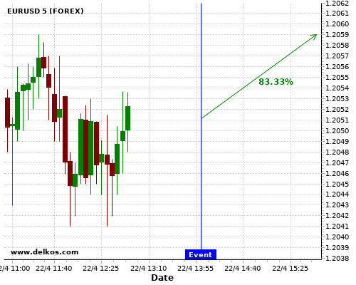 TradersNews 77.77% probability that GBPUSD will trend up on Friday 23 Apr at 07:30 AM GMT if the DE Markit Manufacturing PMI Flash number is greater than 65.8.