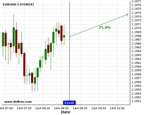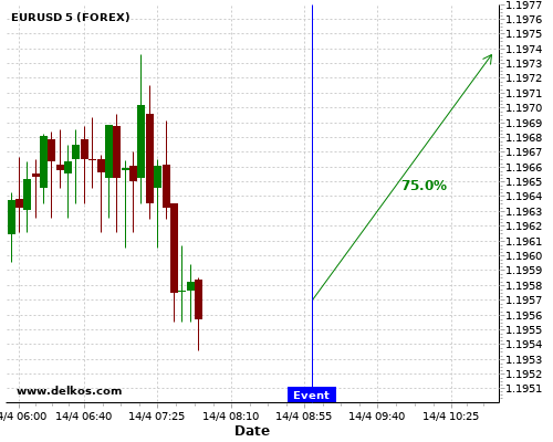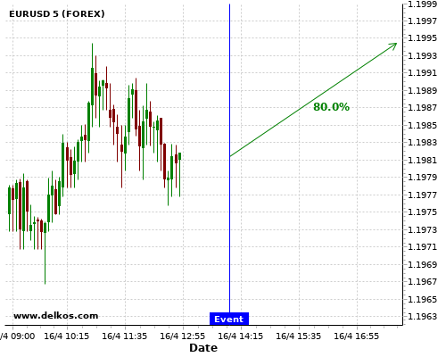 TradersNews 80% probability that EURUSD will trend up on Friday 16 Apr at 02:00 PM GMT if the US Michigan Consumer Sentiment Prel number is less than 89.6.