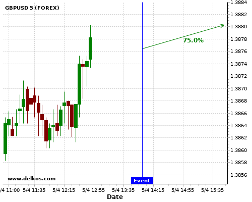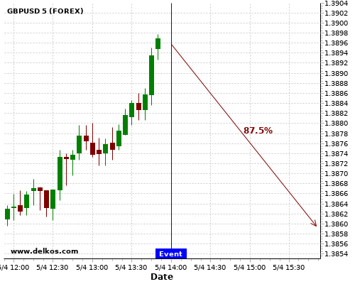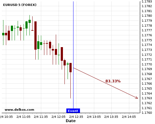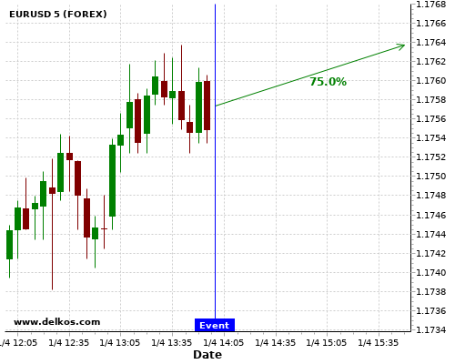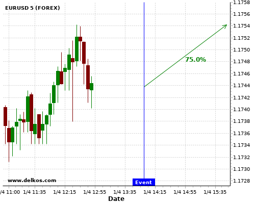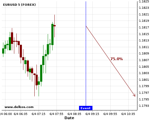 TradersNews 75% probability that EURUSD will trend down on Tuesday 06 Apr at 09:00 AM GMT if the EMU Unemployment Rate number is equal to 8.1%.