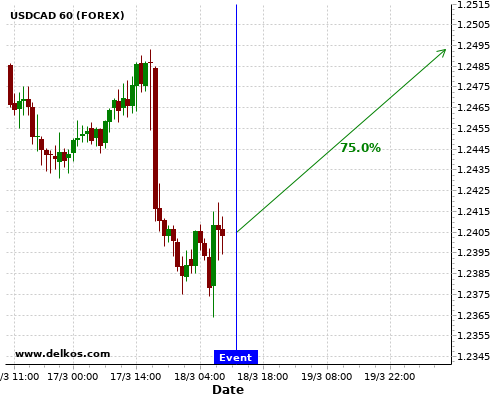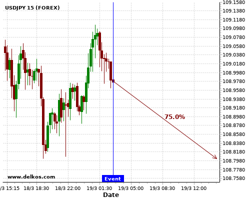 TradersNews 71.42% probability that EURUSD will trend up on Monday 22 Mar at 02:00 PM GMT if the US Existing Home Sales number is greater than 6.5M.