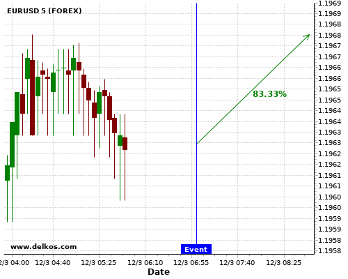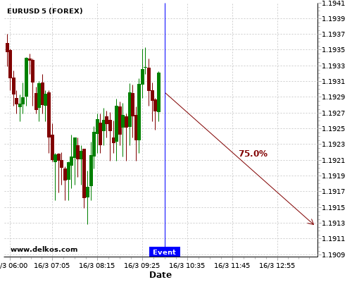 TradersNews 75% probability that EURUSD will trend down on Tuesday 16 Mar at 10:00 AM GMT if the DE ZEW Economic Sentiment Index number is greater than 74.