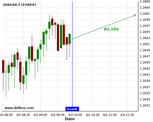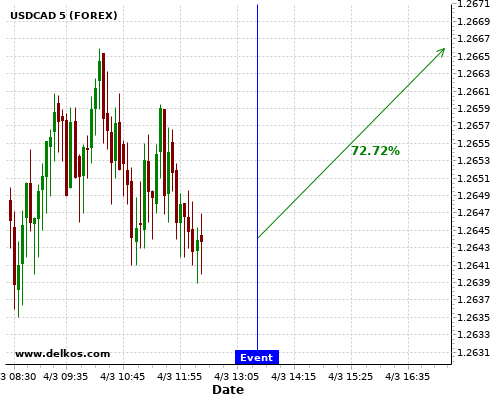 TradersNews 85.71% probability that EURUSD will trend down on Tuesday 09 Mar at 07:00 AM GMT if the DE Balance of Trade number is less than â¬12.4B.