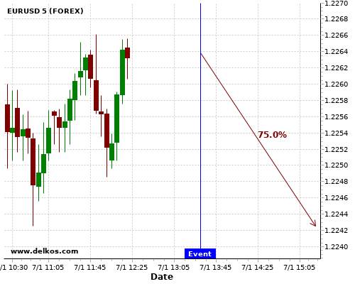 TradersNews 75% probability that EURUSD will trend down on Thursday 07 Jan at 01:30 PM GMT if the US Continuing Jobless Claims number is greater than 5200K.