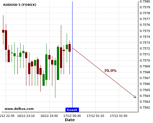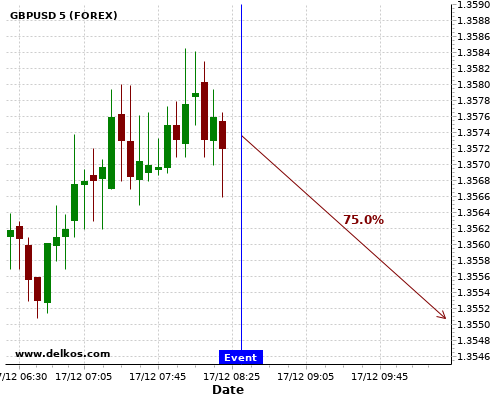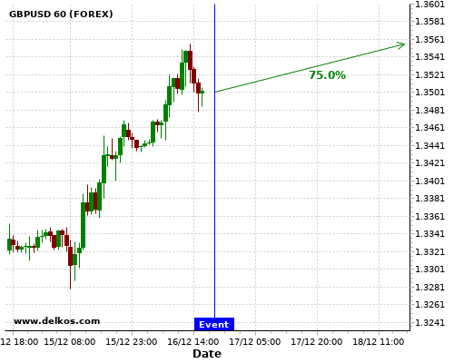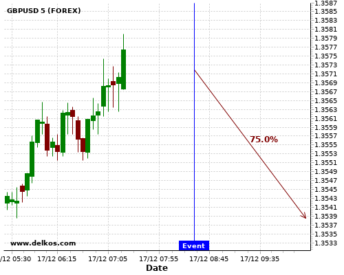 TradersNews 75% probability that GBPUSD will trend down on Thursday 17 Dec at 08:30 AM GMT if the CH SNB Interest Rate Decision number is equal to -0.75%.