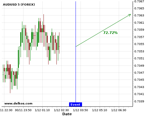 [Add to iCal Calendar] [Add to Google Calendar]This Wednesday 02 Dec at 12:30 AM GMT the latest AU GDP Growth Rate QoQ number will be released. If the number is less than than economists' consensus there is a 71.42% probability that USDJPY will trend up following the news event.This probability is based on the last 12 AU GDP Growth Rate QoQ…