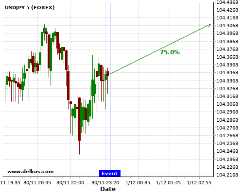 TradersNews 75% probability that USDJPY will trend up on Monday 30 Nov at 11:30 PM GMT if the JP Unemployment Rate number is equal to 3.1%.