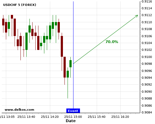[Add to iCal Calendar] [Add to Google Calendar]This Monday 30 Nov at 11:30 PM GMT the latest JP Unemployment Rate number will be released. If the number is equal to than economists' consensus there is a 75% probability that USDJPY will trend up following the news event.This probability is based on the last 12 JP Unemployment Rate events, in which 3…
