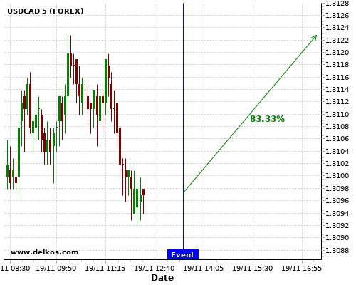 TradersNews 83.33% probability that USDCAD will trend up on Thursday 19 Nov at 01:30 PM GMT if the US Philadelphia Fed Manufacturing Index number is greater than 22.