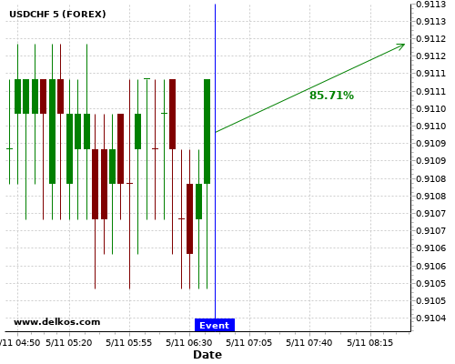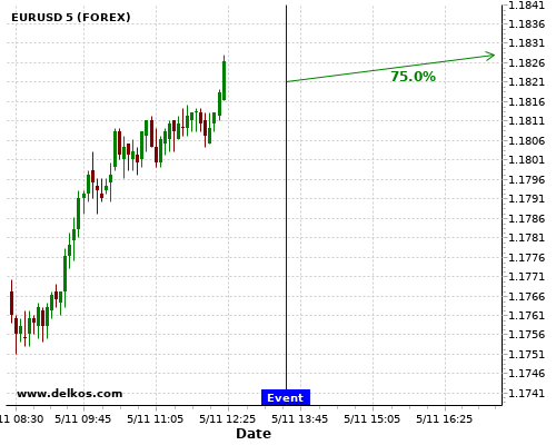 TradersNews 75% probability that EURUSD will trend up on Thursday 05 Nov at 01:30 PM GMT if the US Continuing Jobless Claims number is greater than 7200K.