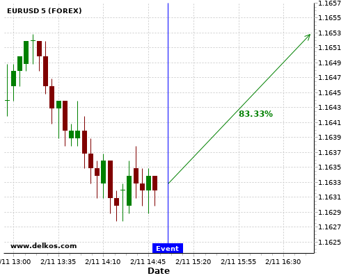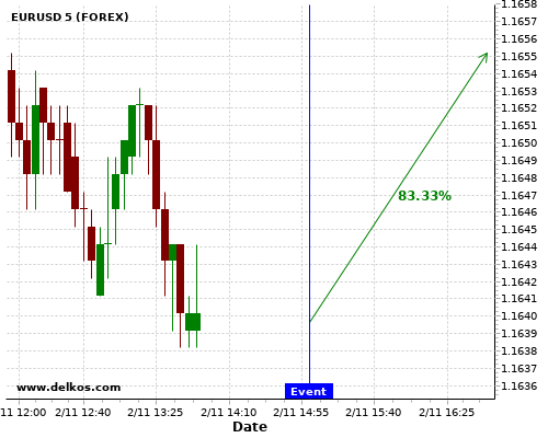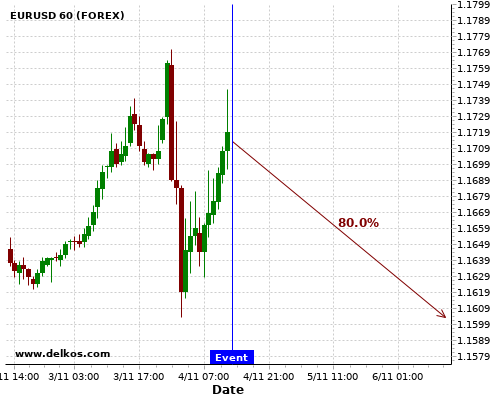 TradersNews 80% probability that EURUSD will trend down on Wednesday 04 Nov at 01:15 PM GMT if the US ADP Employment Change number is less than 650K.