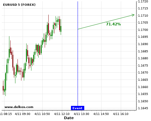 [Add to iCal Calendar] [Add to Google Calendar]This Wednesday 04 Nov at 01:15 PM GMT the latest US ADP Employment Change number will be released. If the number is less than than economists' consensus there is a 80% probability that EURUSD will trend down following the news event.This probability is based on the last 12 US ADP Employment Change events, in…