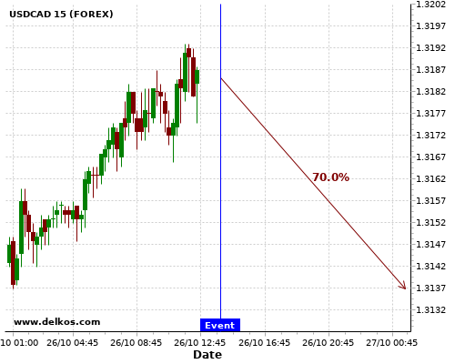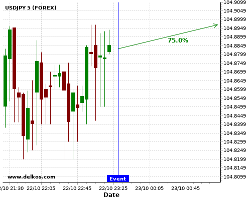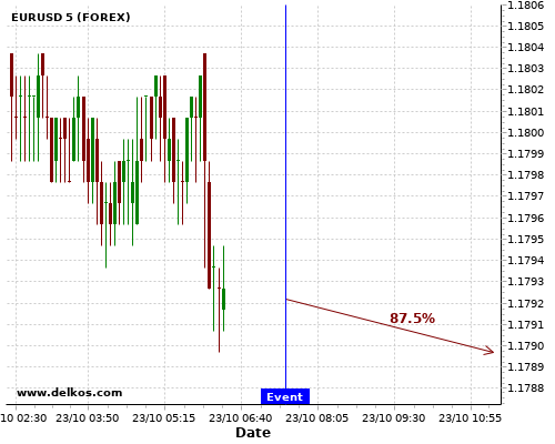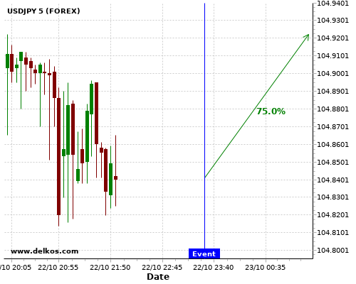TradersNews 87.5% probability that EURUSD will trend up on Tuesday 27 Oct at 12:30 PM GMT if the US Durable Goods Orders MoM number is greater than 0.5%.