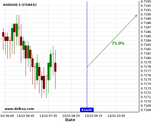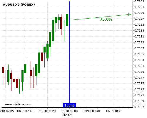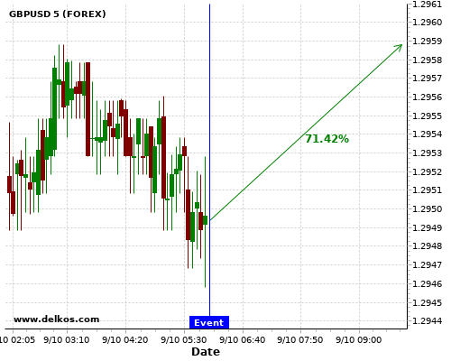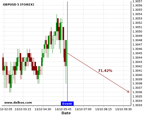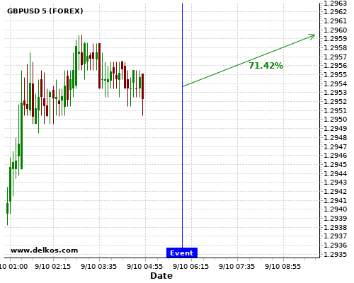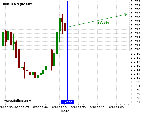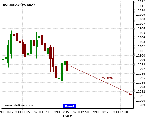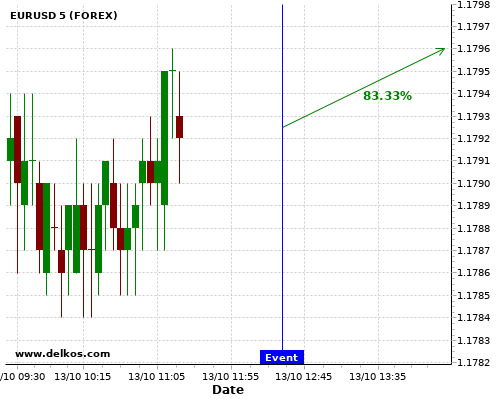 TradersNews 83.33% probability that EURUSD will trend up on Tuesday 13 Oct at 12:30 PM GMT if the US Inflation Rate YoY number is greater than 1.4%.