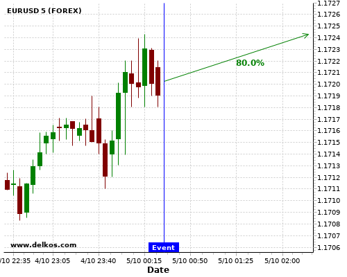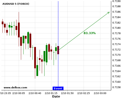 TradersNews 85.71% probability that AUDUSD will trend up on Tuesday 06 Oct at 12:30 AM GMT if the AU Balance of Trade number is greater than A$5.154B.