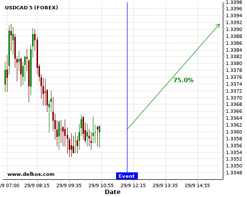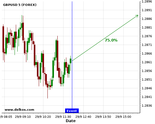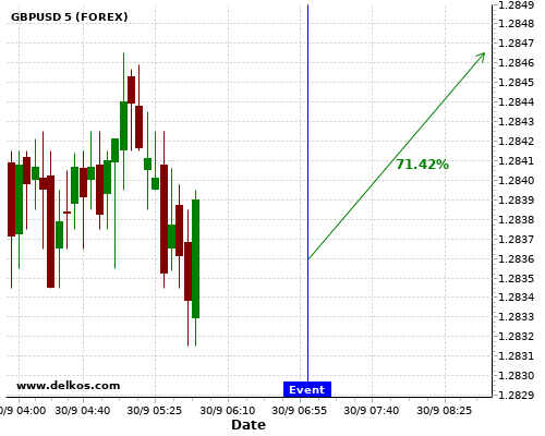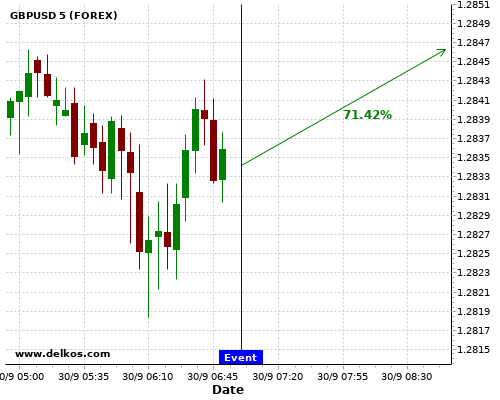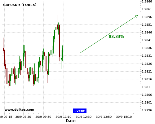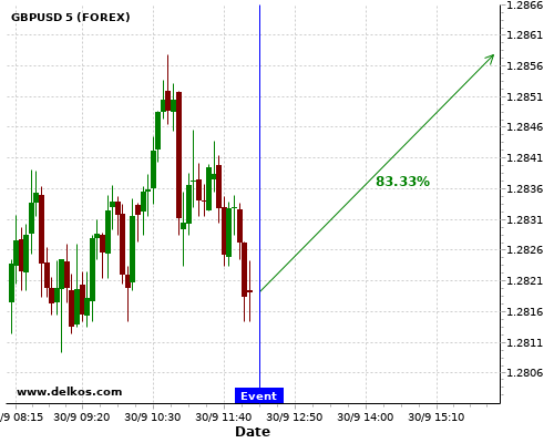 TradersNews 83.33% probability that GBPUSD will trend up on Wednesday 30 Sep at 12:15 PM GMT if the US ADP Employment Change number is greater than 650K.
