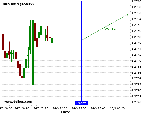 TradersNews 75% probability that GBPUSD will trend up on Thursday 24 Sep at 11:01 PM GMT if the GB Gfk Consumer Confidence number is less than -27.