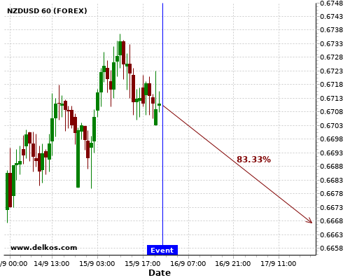 TradersNews 80% probability that GBPUSD will trend up on Wednesday 16 Sep at 06:00 AM GMT if the GB Inflation Rate YoY number is less than 0%.