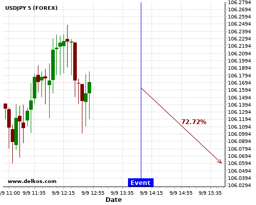 [Add to iCal Calendar] [Add to Google Calendar]This Friday 11 Sep at 12:30 PM GMT the latest US Inflation Rate YoY number will be released. If the number is less than than economists' consensus there is a 80% probability that EURUSD will trend down following the news event.This probability is based on the last 12 US Inflation Rate YoY events, in…