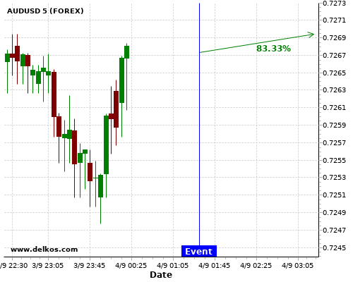 [Add to iCal Calendar] [Add to Google Calendar]This Wednesday 09 Sep at 12:30 AM GMT the latest AU Westpac Consumer Confidence Index number will be released. If the number is less than than economists' consensus there is a 85.71% probability that NZDUSD will trend up following the news event.This probability is based on the last 12 AU Westpac Consumer Confidence Index…