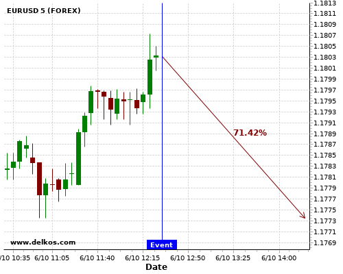 DELKOS 即时新闻: EURUSD有71.42%的可能性将会在接下来的几小时下跌。