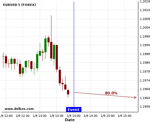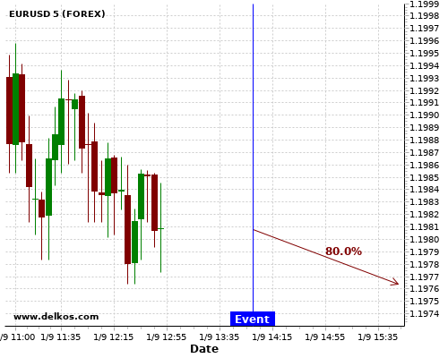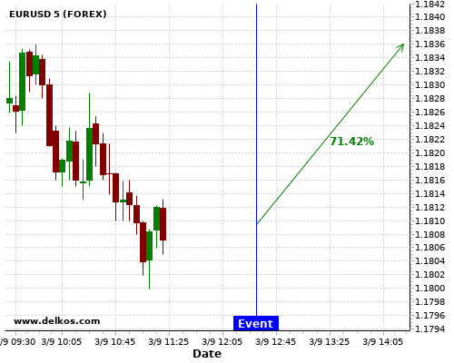 DELKOS 09/03 12:30 PM GMT将公布US Continuing Jobless Claims的数据如果小于专家预期,EURUSD有71.42%的可能性将上涨。