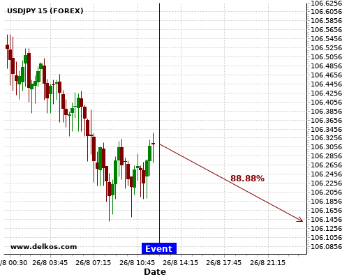 DELKOS 即时新闻: USDJPY有88.88%的可能性将会在接下来的几小时下跌。
