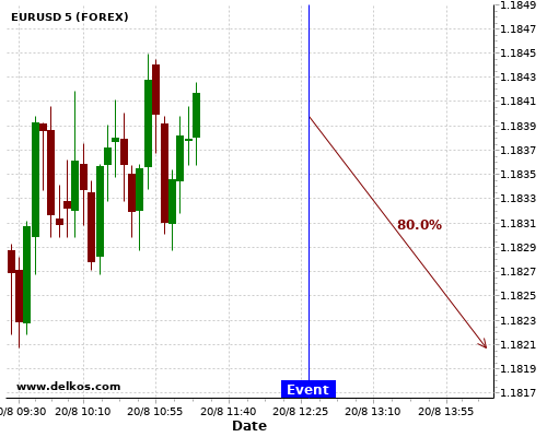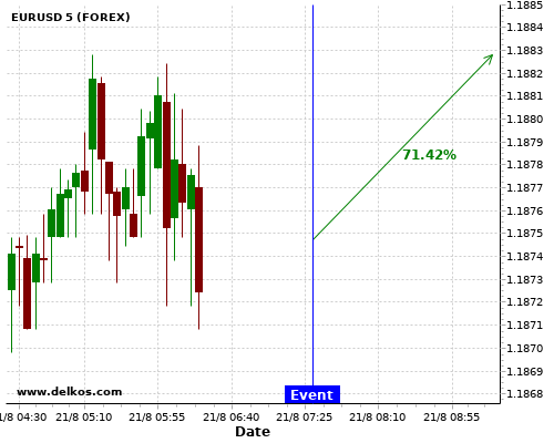 DELKOS 08/21 07:30 AM GMT将公布DE Markit Manufacturing PMI Flash的数据如果大于专家预期,EURUSD有71.42%的可能性将上涨。