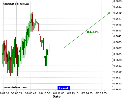 DELKOS 08/06 12:30 PM GMT将公布US Continuing Jobless Claims的数据如果大于专家预期,NZDUSD有83.33%的可能性将上涨。