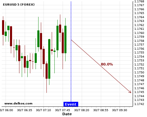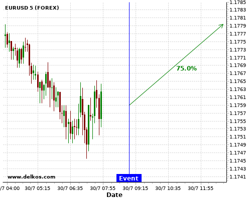 DELKOS 07/30 12:00 PM GMT将公布DE Inflation Rate YoY Prel的数据如果大于专家预期,USDCHF有75%的可能性将下跌。