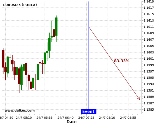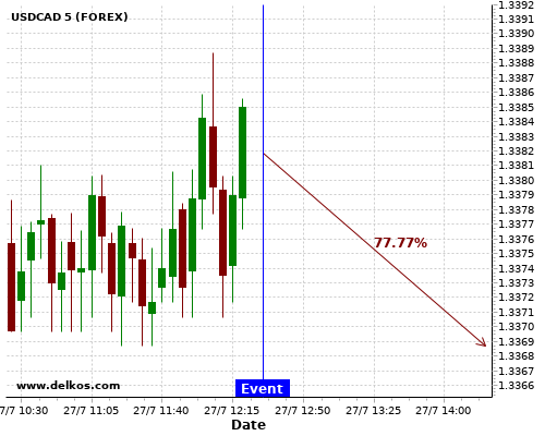 DELKOS 即时新闻: USDCAD有77.77%的可能性将会在接下来的几小时下跌。