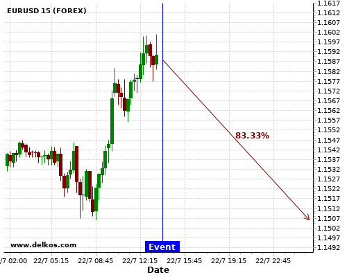 DELKOS 07/23 02:00 PM GMT将公布EMU Consumer Confidence Flash的数据如果大于专家预期,EURUSD有85.71%的可能性将下跌。