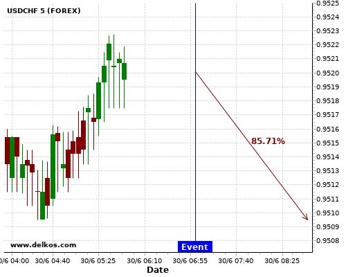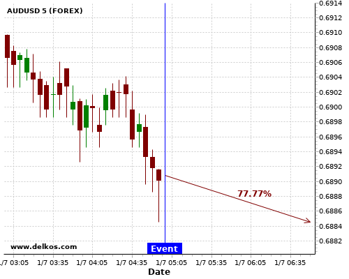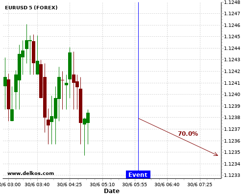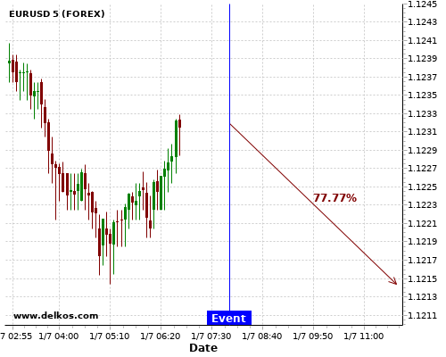 DELKOS 07/01 07:55 AM GMT将公布DE Unemployment Rate的数据如果等于专家预期,EURUSD有77.77%的可能性将下跌。