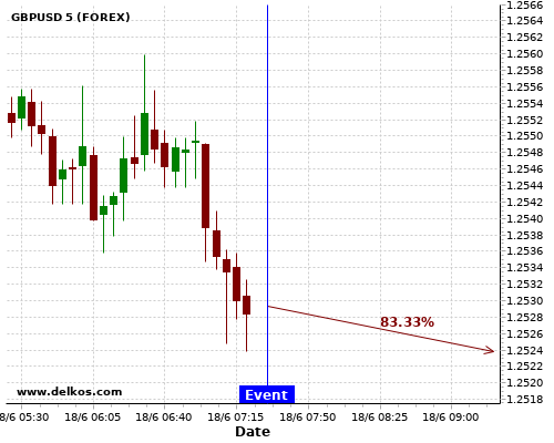DELKOS 06/23 07:30 AM GMT将公布DE Markit Manufacturing PMI Flash的数据如果大于专家预期,EURUSD有83.33%的可能性将下跌。