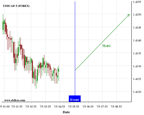 DELKOS 即时新闻: USDCAD有75%的可能性将会在接下来的几小时上涨。