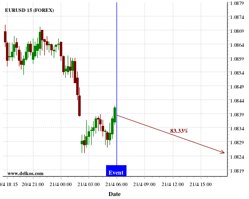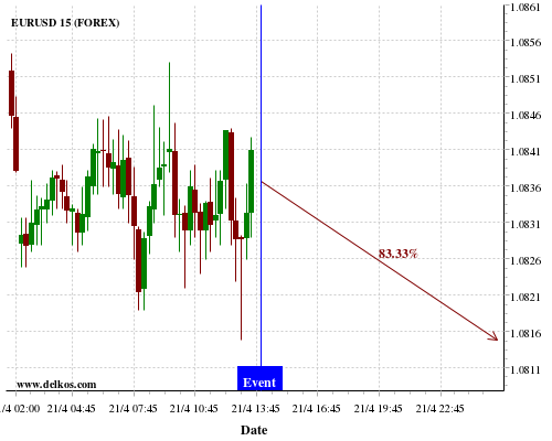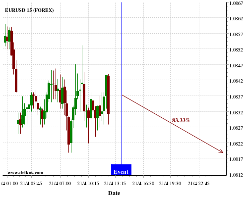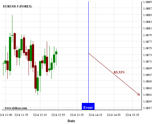 DELKOS 04/22 02:00 PM GMT将公布EMU Consumer Confidence Flash的数据如果大于专家预期,EURUSD有83.33%的可能性将下跌。