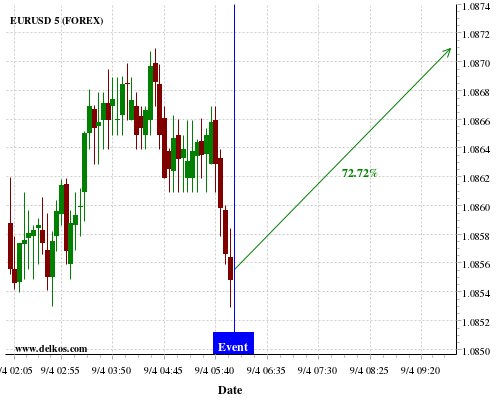 DELKOS 即时新闻: EURUSD有87.5%的可能性将会在接下来的几小时下跌。