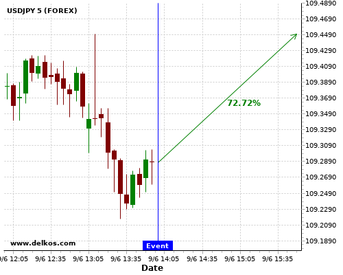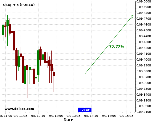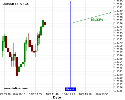 DELKOS 06/10 12:30 PM GMT将公布US Inflation Rate YoY的数据如果大于专家预期,EURUSD有83.33%的可能性将上涨。