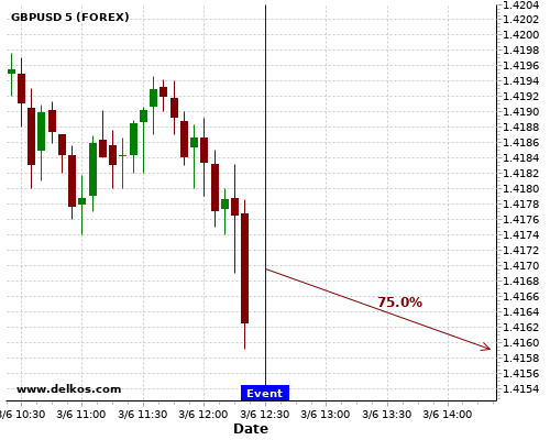 DELKOS 即时新闻: GBPUSD有75%的可能性将会在接下来的几小时下跌。
