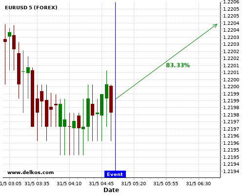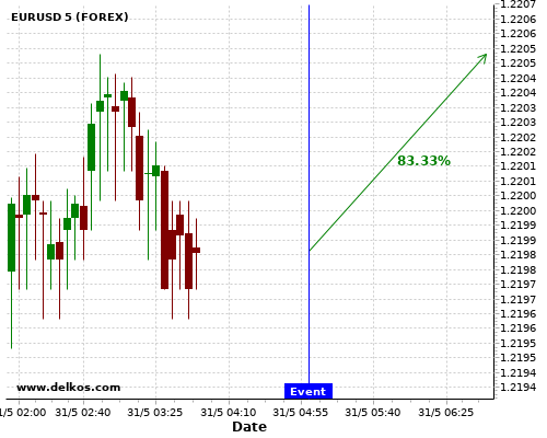DELKOS 即时新闻: EURUSD有83.33%的可能性将会在接下来的几小时上涨。