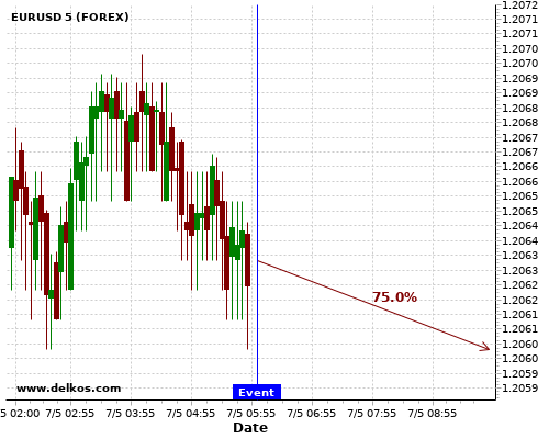 DELKOS 即时新闻: EURUSD有75%的可能性将会在接下来的几小时下跌。