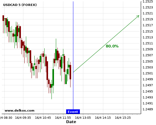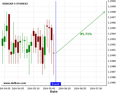 DELKOS 即时新闻: USDCAD有85.71%的可能性将会在接下来的几小时上涨。