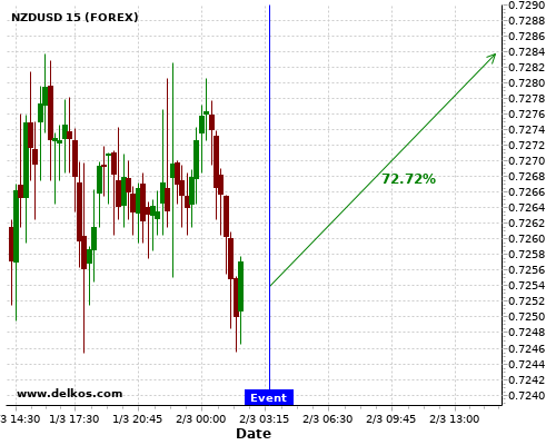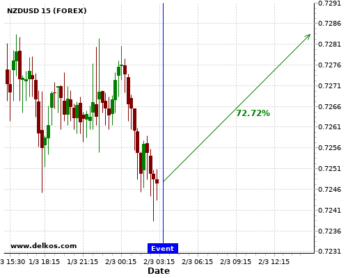 DELKOS 即时新闻: NZDUSD有72.72%的可能性将会在接下来的几小时上涨。
